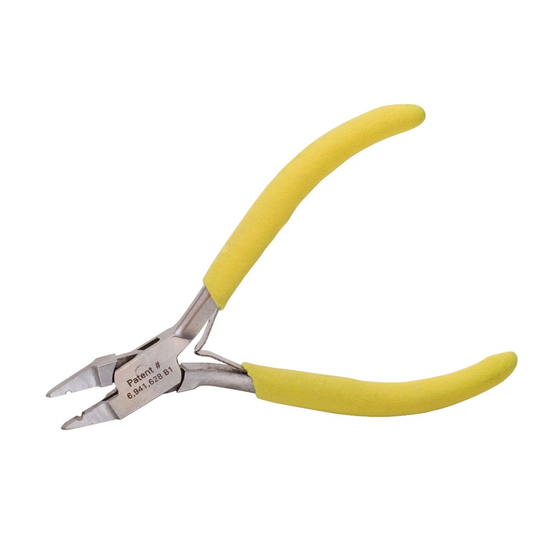 The patented Universal Magical Crimper was created exclusively for use with 2 mm x 2 mm sterling silver and gold-filled tubular crimp beads plus .018″, .019″, and .024″ stringing wire. A few easy steps will transform a 2 mm crimp into a round bead!