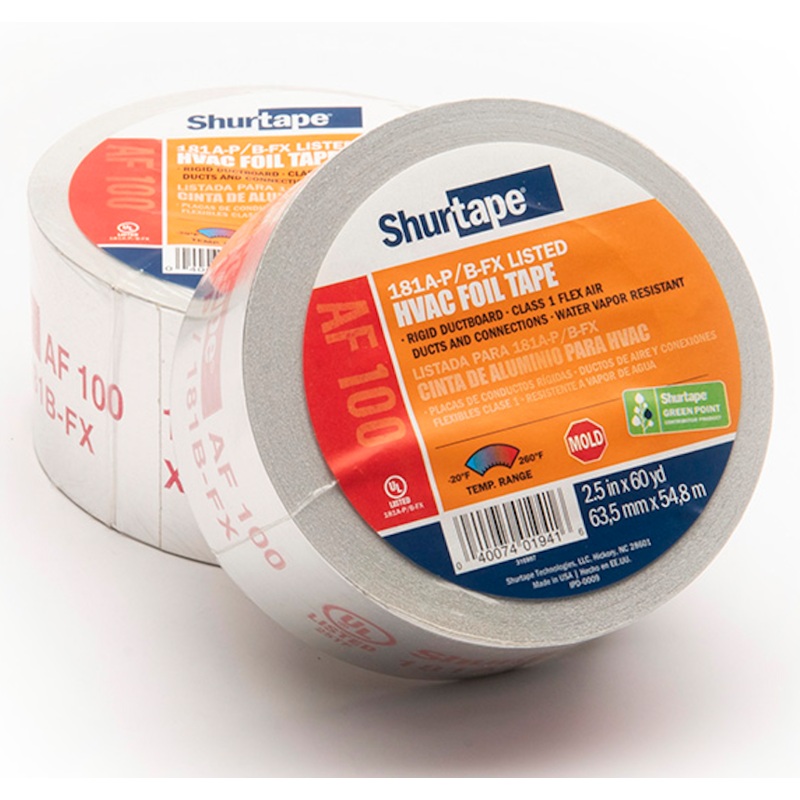 Aluminum pressure sensitive duct tape, 2.5″ wide,rated UL181A-P-181B-F/X, 180′ roll