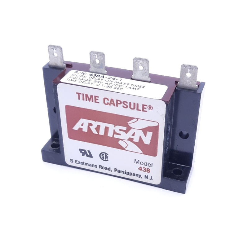 From our inventory we are selling a Artisan 438A-24-1 Time Delay Relay, 24VAC/DC, 1A, 0.1-30 Seconds Delay Range.
