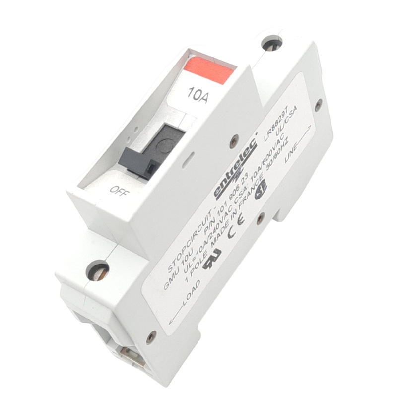 From our inventory we are selling a Entrelec GMU 10U Miniature Circuit Breaker, 1-Pole, 10A, 240VAC Max, DIN Rail.