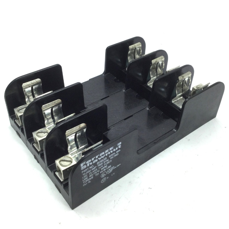 | Item Condition: Used SKU: SB-133191 ST34-4-I From our inventory we are selling a Ferraz Shawmut 60608 Fuse Holder, 600V 60A, 3-Pole, Class H/K Fuses. Specifications: