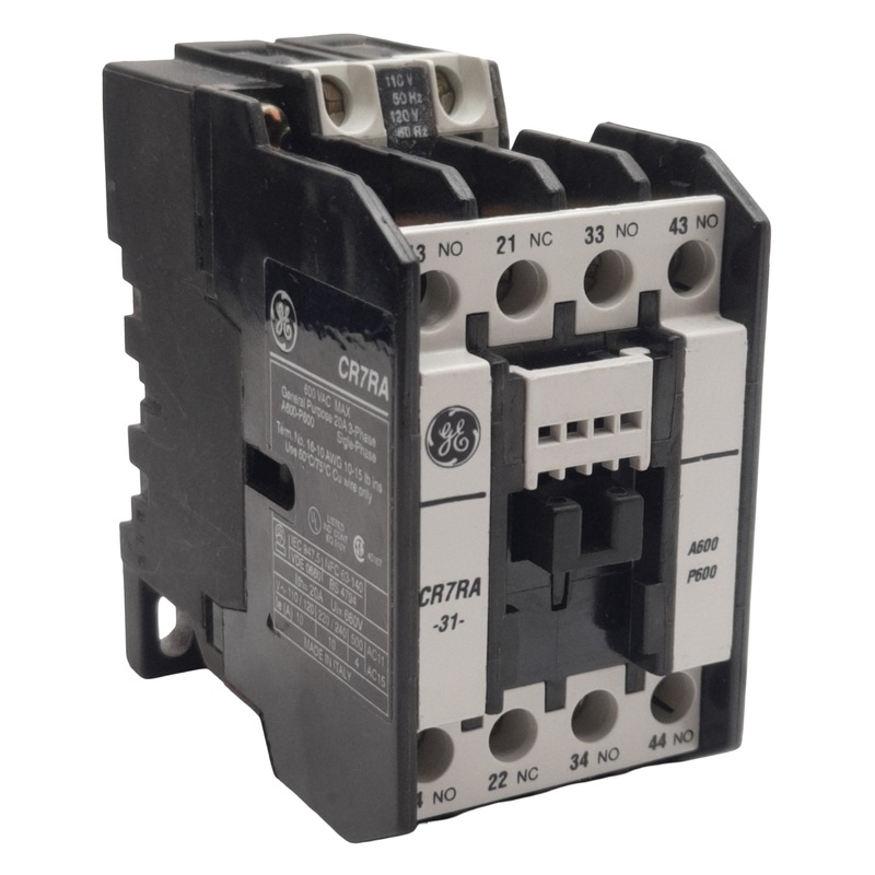 Used General Electric CR7RA-31-120V Contactor, 3-Pole, 20A 600VAC, 110-120VAC Coil