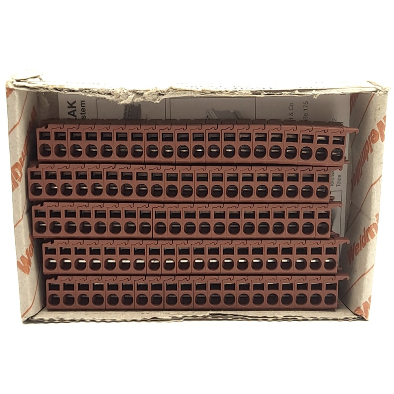From our inventory we are selling a Lot of 100 Weidmuller ZVL 1.5 BR, 1650370000 Terminal Block Distribution Plugs.
