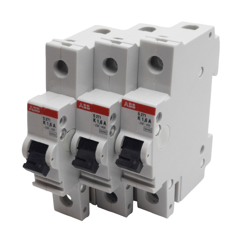 Used Lot of 3 ABB S271-K1.6 Circuit Breaker, 1-Pole, 1.6A 230/400VAC K-Curve DIN Rail