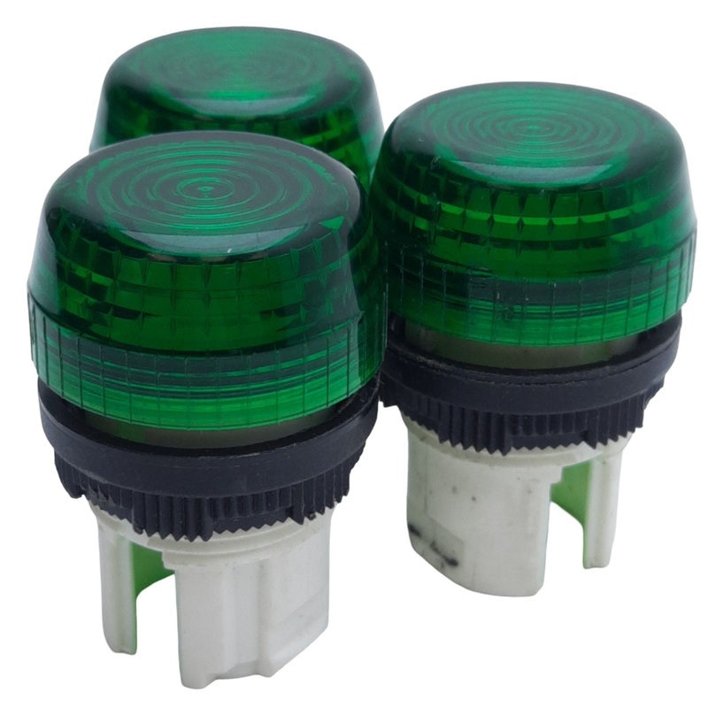 From our inventory we are selling a Lot of 3 Allen Bradley 800EP-PL3 Pilot Light Operator, Round Green Lens, 22.5mm.