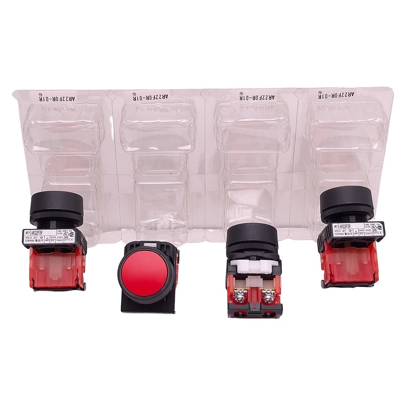 From our inventory we are selling a Lot of 4 Fuji Electric AR22F0R-01R Pushbutton Switch, Red, 250VAC 6A, 22mm.
