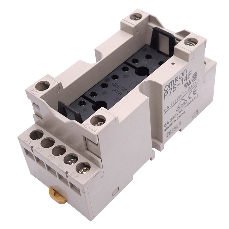 Used Omron P7S-14F Relay Socket, 14-Pin, 6A 277VAC Max, DIN Rail Mount
