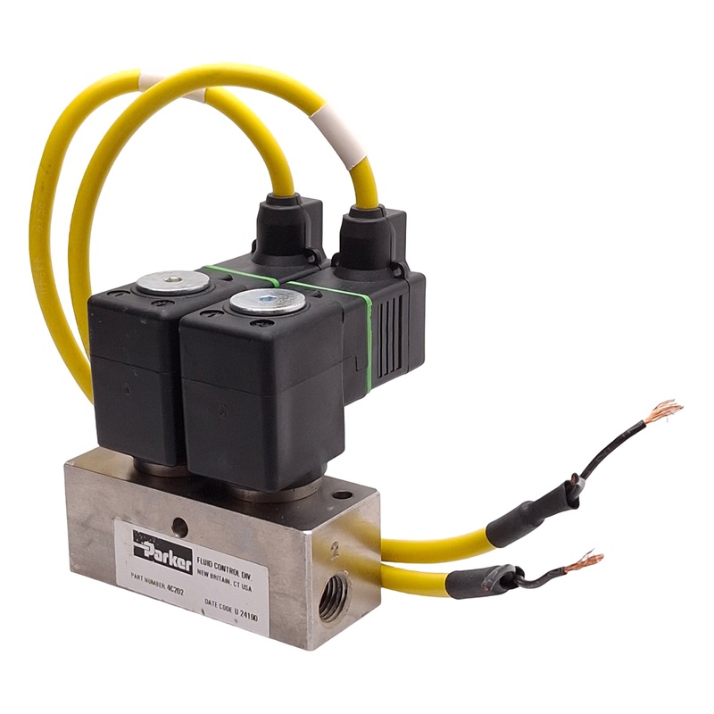 From our inventory we are selling a Parker 4C202 Pneumatic Manifold, 2-Station, 2-Way NC, 1/4in NPT, 24VDC Coils. Specifications:
