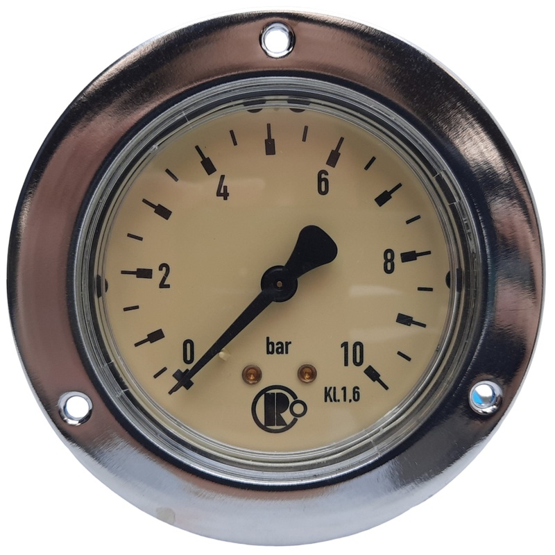 Used Riegler 101875 306/63 Pressure Gauge w/ Front Ring, Range 0-10 bar, G 1/4, 63mm