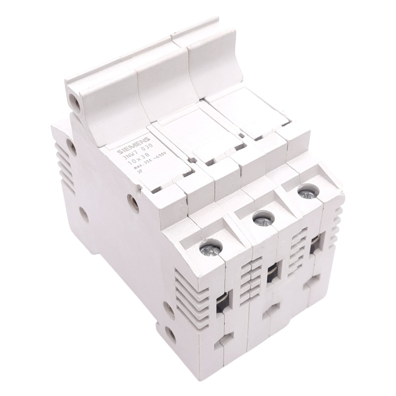 Used Siemens 3NW7 030 Fuse Holder, 3-Pole, 10×38, 690VAC 32A Max, DIN Rail, *Chipped