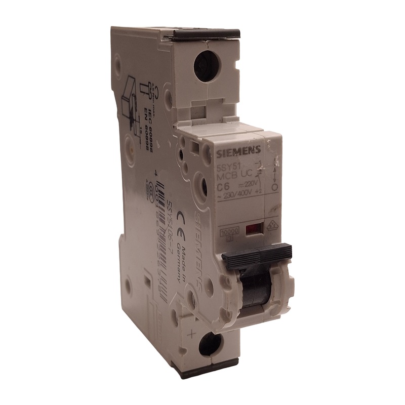 Used Siemens 5SY5106-7 Circuit Breaker, 1-Pole, 6A 230/400VAC, C-Curve, DIN Rail