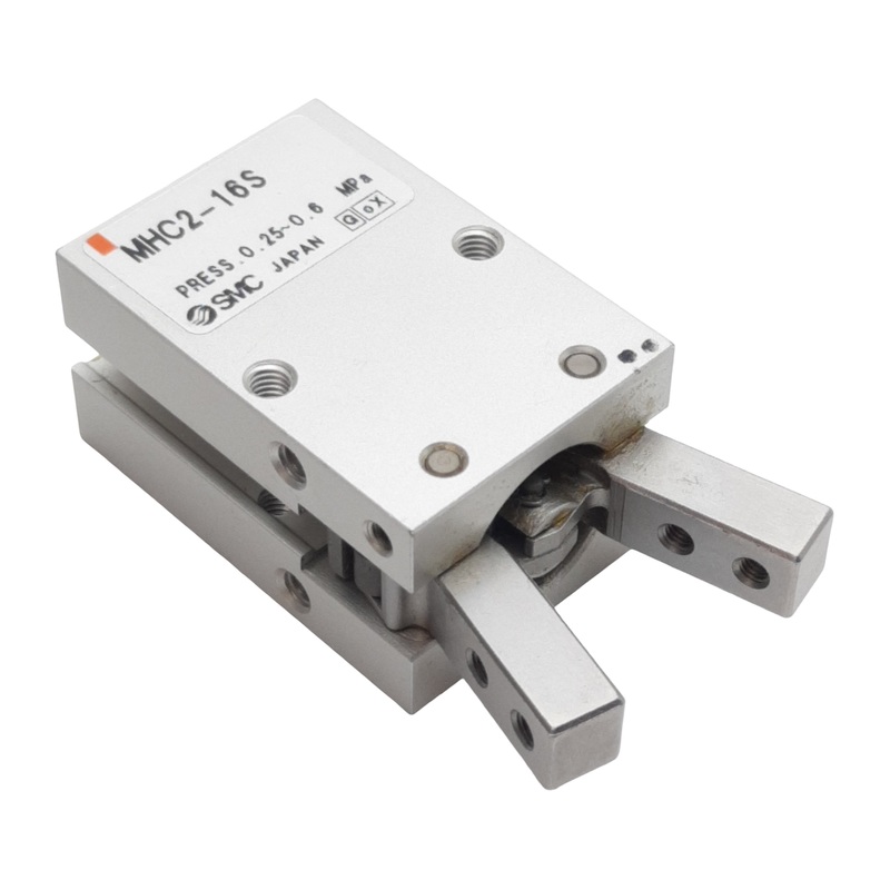 From our inventory we are selling a SMC MHC2-16S Pneumatic Angular Gripper, 16mm Bore, 0.31Nm, M5, 0.25-0.6MPa.