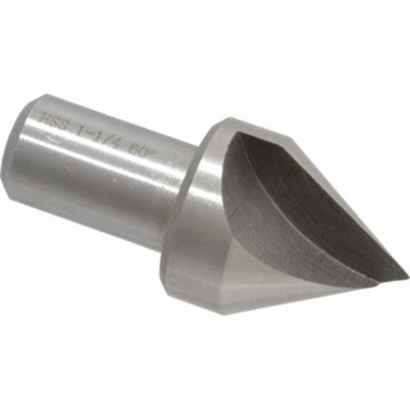 Value Collection 1-1/4″ Head Diam, 3/4″ Shank Diam, 1 Flute 60 High Speed Steel Countersink Bright Finish, 2-3/4″ OAL, Single End, Straight Shank, Right Hand Cut