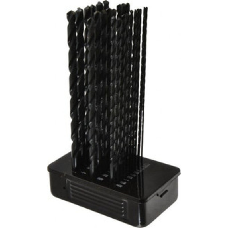 Drill Bit Set Type Aircraft Extension Length Drill Bits Number of Pieces 25 Tool Material High-Speed Steel Minimum Drill Bit Size (Frac Inch) 1/8 Shank Type Straight Coating/Finish Oxide Point Type Standard Drill Point Angle 118 Step Increments 1/64 Maximum Hole Size 1/2 Overall Length 12 Coolant Through No UNSPSC Code 27112800 Storage Unit Material Metal System Of Measurement Inch Tool Application Metalworking, Multipurpose Drill Bits Tool Performance General Purpose Product Service Code 5133 Storage Unit Type Open Stand