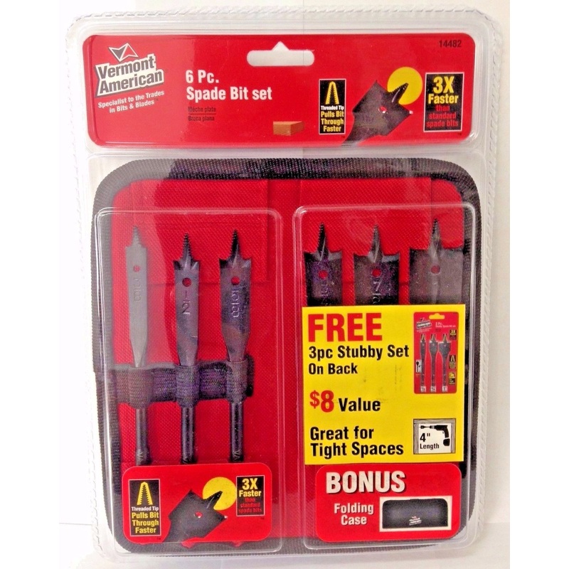 Vermont American 14482 6 Piece Spade Bit Drill Bit Set + 3 Piece Stubby Set