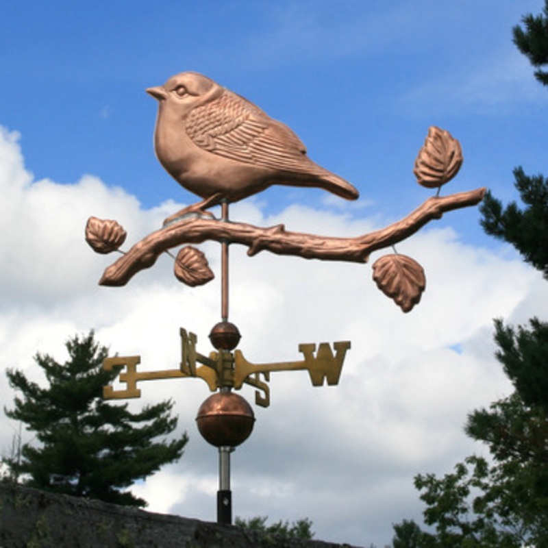 Warbler Weathervane - Made in USA Elevate your outdoor aesthetics with our exquisite Warbler Perched on a Branch Weathervane, a stunning fusion of art and functionality that transforms any structure into a statement piece. Handcrafted in the USA from high-