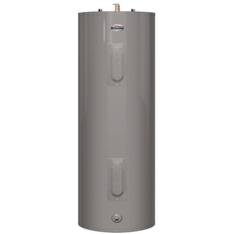 Tall Essential Electric Water Heater. Isolated tank design reduces conductive heat loss. EverKleen self cleaning device fights harmful sediment build-up with a high- velocity spiraling water stream helps operating efficiency by saving energy, money and improving tank life. 4500 Watt resistored copper elements to prolong anode rod and tank life. Premium grade anode rod provides long-lasting tank protection. Electric junction box located above heating elements for easy installation. Over-temperature protector cuts off power in excess temperature situations. Automatic thermostat keeps water at desired temperature. 6 year. Size 40 gallons. Tank height 60-3/4. Tank diameter 19-1/4.