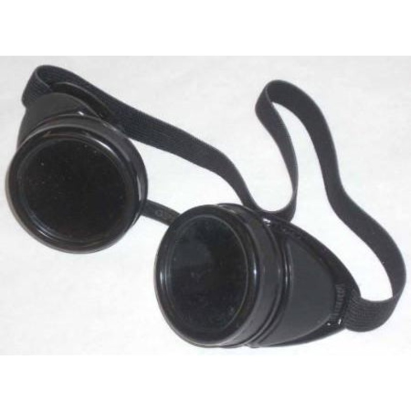 A pair of Eye Cup Welding & Cutting Goggles. Each pair has 50mm replaceable shade 5 lenses. Elastic band holds the eye cup goggles firmly & comfortably to your head. Rubber strip connects the eye cups together. Vents on the sides of both lenses keep the goggles from fogging up. These are great for welding or costumes.