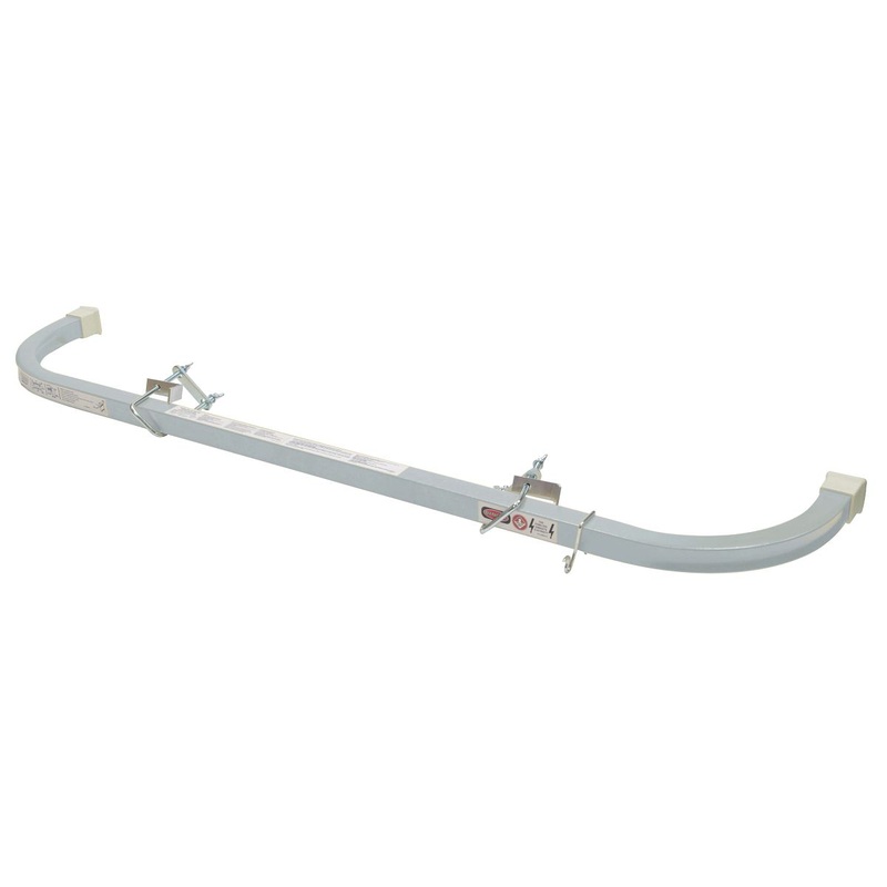 The AC96 Aluminum Stabilizer spans 47in and provides a standoff of 10in. For use on aluminum ladders of all duty ratings. Attaches in minutes. Mar-resistant rubber end caps protect the work surface. Paint can hook included. Ideal for stabilizing the M1 ser