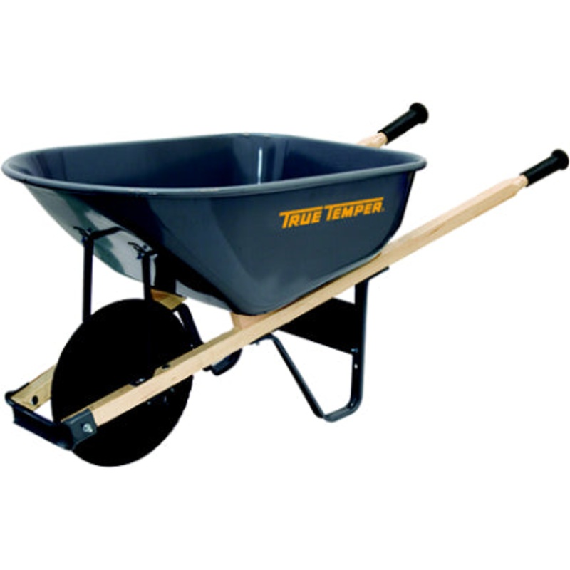 Heavy gauge seamless steel tray with front tray braces. H brace and 15.75″ flat free tire. Knobby tread pattern tire. 6 cu. ft. capacity. Gray. Flat free tire.