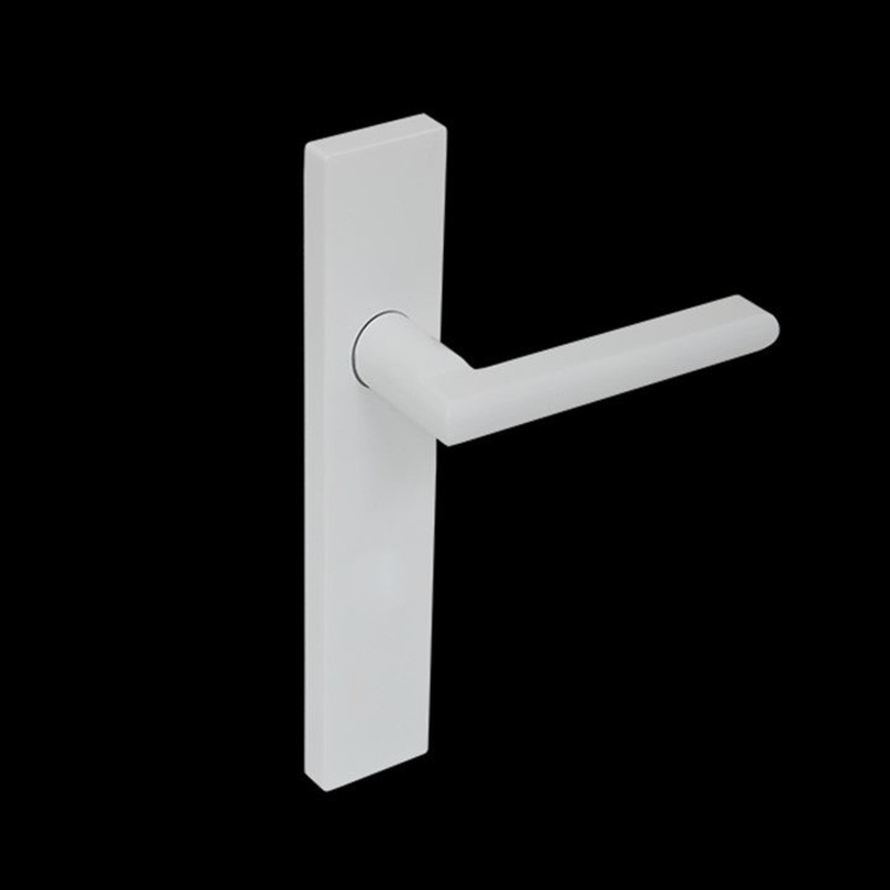 DescriptionSolid slim profile door handle mounted on a long rectangular face plateFace plate 42mm wide x 200mm longSolid zinc alloy construction with a pure white finishSuitable for both left and right-hand opening doorsSuitable for door thickness from 35m