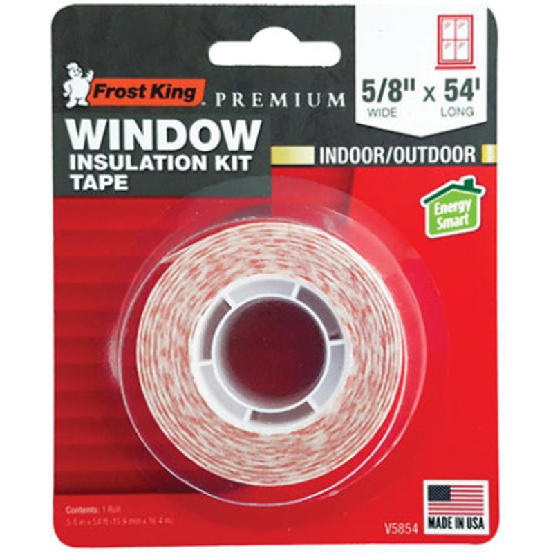 Create energy-saving storm windows and doors. Measures 5/8" x 54 long (1 roll). Covers up to 3 standard-size windows. Crystal-clear PVC tape. Heavy duty for indoor and outdoor use.