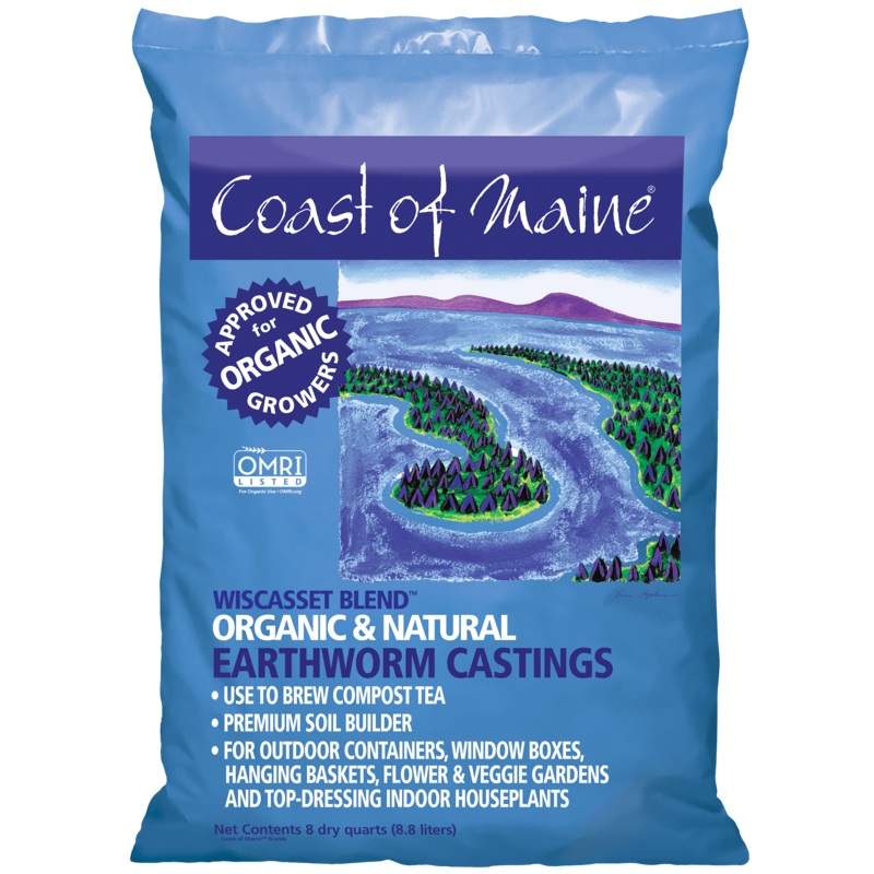 Wiscasset Blend Earthworm CastingsUses:Soil conditioning, top dress indoor container plants, compost tea Great for vegetables!Coast of Maine Organic Wiscasset Blend Earthworm Castings is a finely textured, supercharged vermicompost. It is a rich blend of t