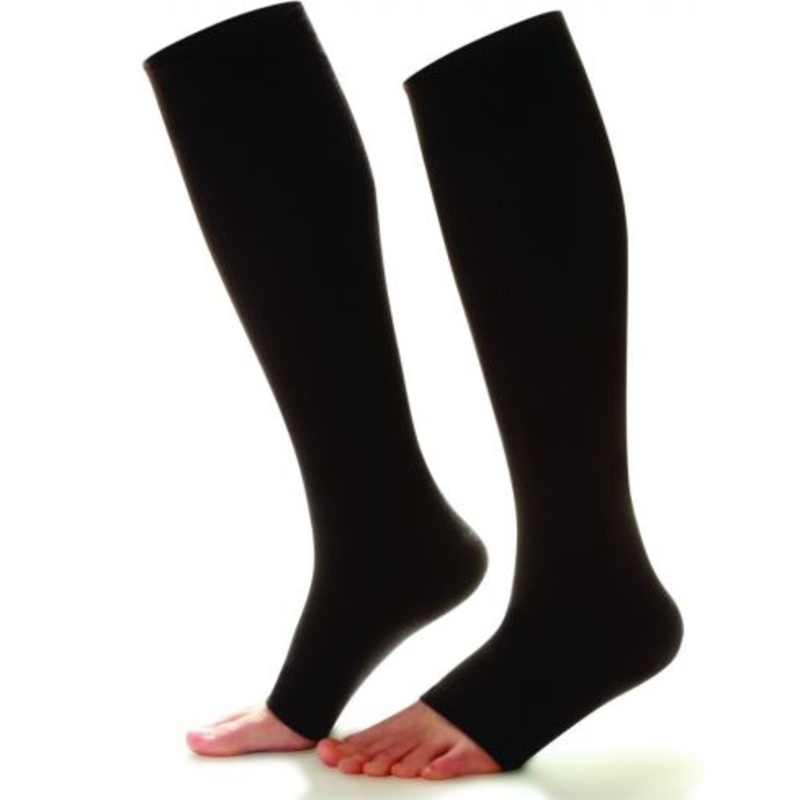 Convenient, open-toe socks with firm compression to wear with sandals.