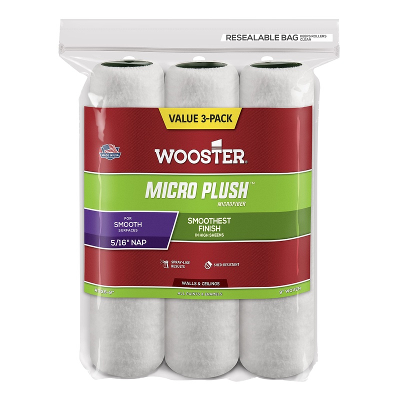 Wooster R335-9 Micro Plush Roller Cover with 5/16" Nap (3 Pack), 9 inches, WhiteKey Features:White Microfiber Fabric Creates Smooth, Uniform ResultsExcellent For All Paints & Enamels, Including Low Voc & Deep ColorsGreen Double-Thick Polypropylene Core Res