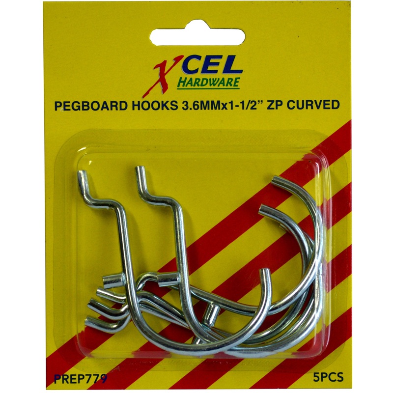 PREP779 PEGBOARD HOOKS (5) 1/8 x 1.5inCurved