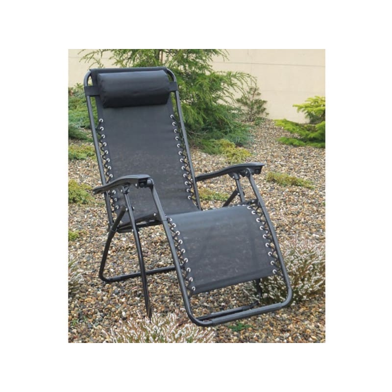 A stylish design that is sure to compliment any decking or patio area, this zero gravity chair is black or grey in colour and benefits from a head cushion.