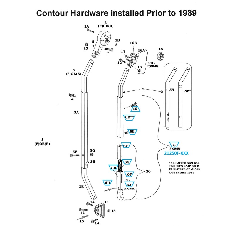 Zip Dee Bright Front Rafter Arm Tube Assemblyfor Zip Dee contour hardware includes:210190 Front Claw Casting (6A)21260F-XXX Bright '88 Front Slotted Claw Tube (6B)212910-XXX Bright '88 Stub Bar, 4-3/4" (6C)212000 Bright '88 Rafter Arm Tube (6D)310060 1/4-2